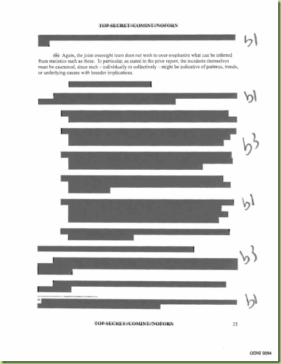 Butt let’s continue our search for transparency in the most transparent administration ever. How about the NSA phony scandal? How well are we doing with transparency with respect to that? It’s a bit hard to tell, as some portions of the evidence requested has been redacted: